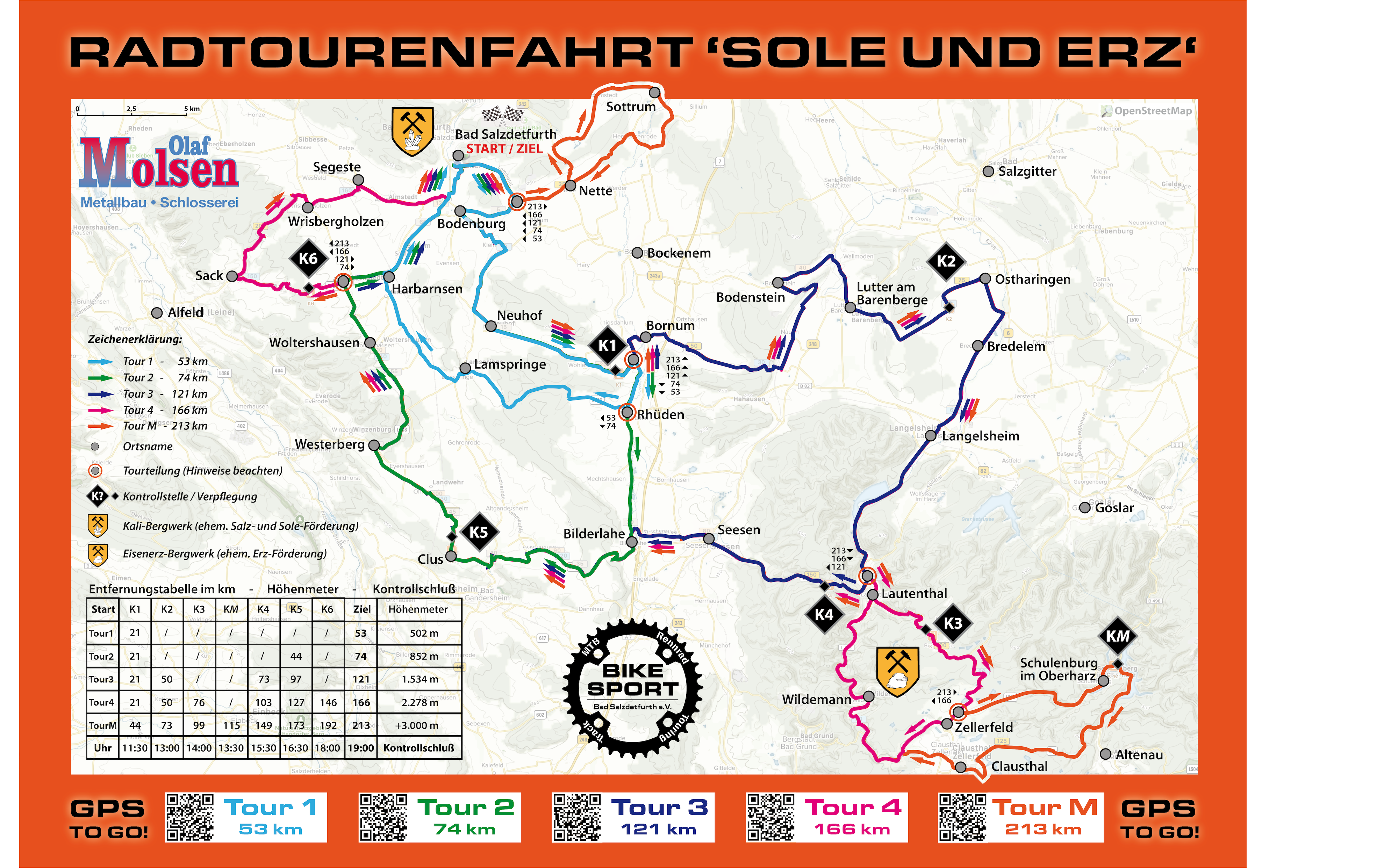 Ihr wollt unsere lange RTF – Strecke über 166 km fahren, seid aber unsicher ob ihr es schafft, oder mit welcher Geschwindigkeit ihr das Ganze angehen sollt? Kein Problem, wir bieten euch dieses Jahr zwei geführte Gruppen an. Die schnellere Gruppe peilt ein Stundenmittel von 28 km/h an, die zweite wird sich bei 25 km/h einpendeln. Jede Gruppe wird von zwei erfahrenen Guides begleitet, die euch bis ins Ziel bringen werden.