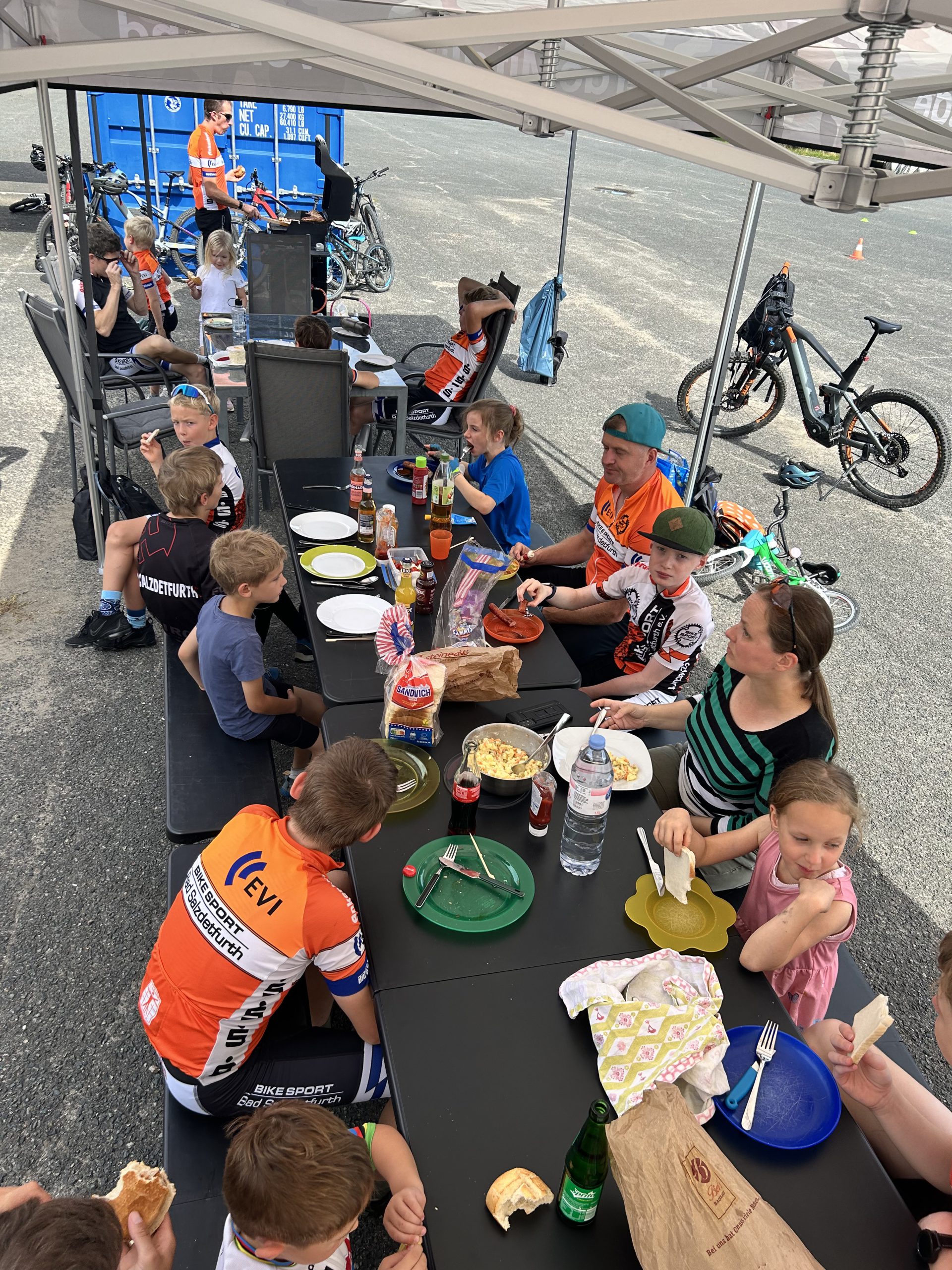 Nach der sportlichen Leistung wartete eine wohlverdiente Stärkung: Grillgut, kühle Getränke und gute Gespräche sorgten für eine entspannte Atmosphäre. Die Kinder nutzten die Zeit zum Spielen oder drehten noch ein paar Extrarunden im BOP.