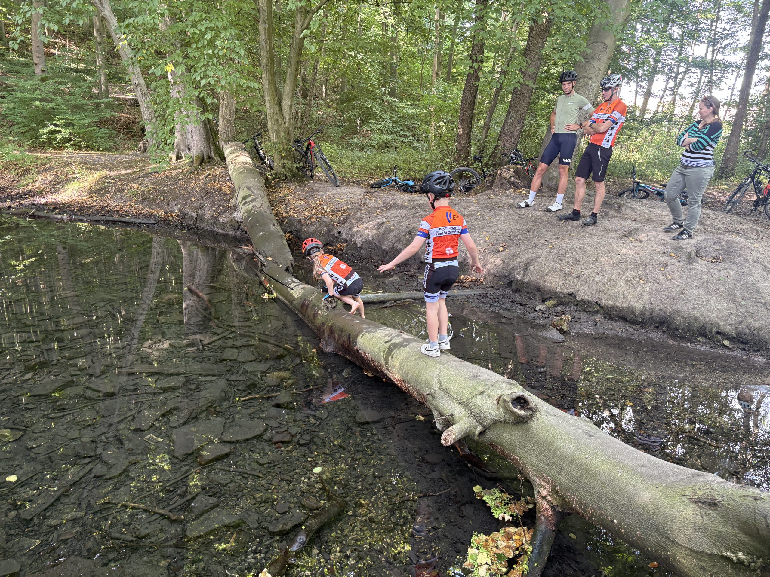 Um allen Teilnehmenden ein optimales Erlebnis zu bieten, starteten die Gruppen zeitversetzt in die umliegenden Wälder. Das Ziel war klar: gemeinsame Ankunft um 13 Uhr im Bike- und Outdoorpark Bad Salzdetfurth. Dort kamen alle Gruppen glücklich, etwas müde – aber mit strahlenden Gesichtern – wieder zusammen.